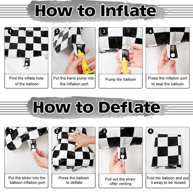 - πΉ Easy to Inflate & Deflate: The film checkered number balloons only need to be filled with 90% air or helium. when you want to fill the balloon with air, just put the straw or insert the helium valve into the plastic valve at the bottom of the figure and blow slowly. When the balloon is fully inflated, remove the straw and squeeze the self-sealing plastic valve. If you want your balloon to float in the air, you can go to your local convenience store and fill it with helium.