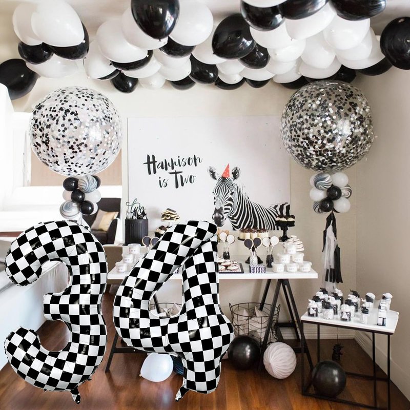 π 40 Inch black and white grid giant digital aluminum film balloons decorations make your room look special and more attractive.