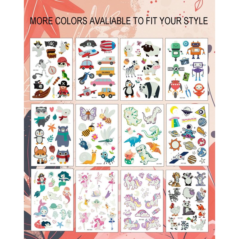 - EASY-TO-APPLY TATTOOS STICKERS: Ideal as party supplies, these temporary tattoos for kids make for effortless application and joyful party favors.