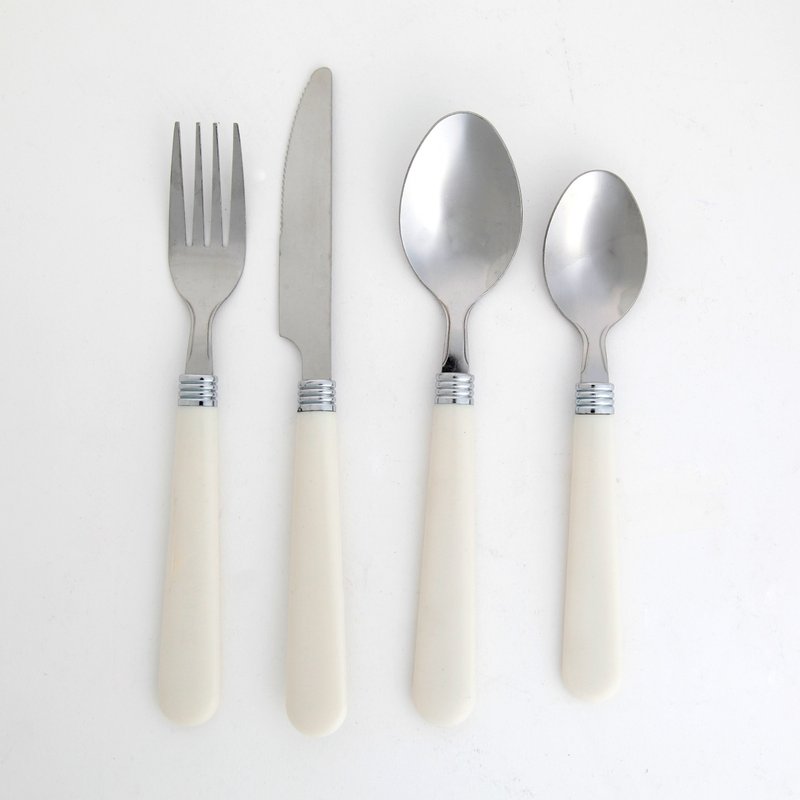- Stainless steel flatware with plastic handle