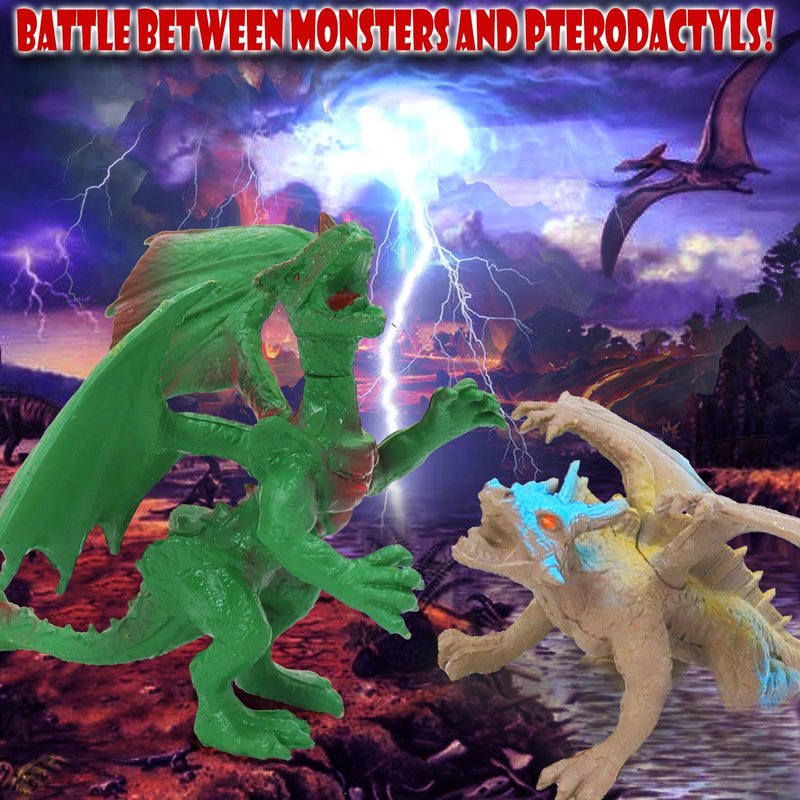 GIDGOD 12Piece Dinosaur Model Realistic Flying Dragon Gift Box Toy, 4 inch sci-fi Game Monster Triceratops Pterodactyl Party Gifts Boys Hobbyist Prize