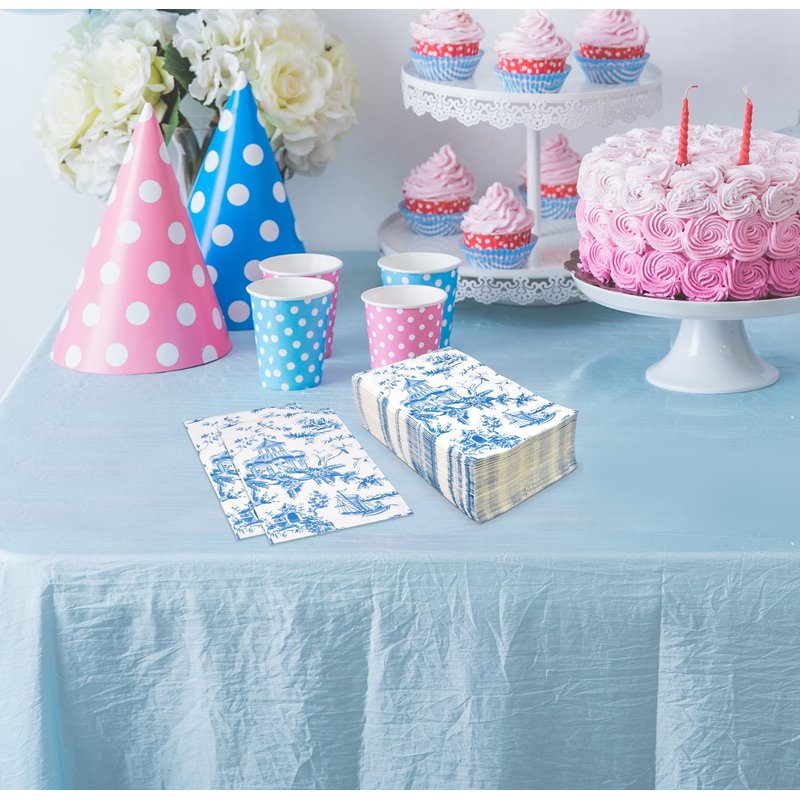 - Enough For Your Guests: Stock up with these blue and white napkins so you can be assured that you will have enough for all your guests who will attend your party. Serve dinner to guests in catering, buffet, potluck, events or daily meals. Ideal for dinner table placement, office, party decor, powder room, bathroom vanity, kitchen counter top and guest bathrooms.