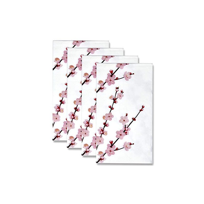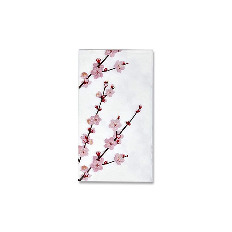 - Cherry Blossoms Guest Napkins: Gift Boutique set of 100 floral guest napkins features pink cherry blossom twigs on a white background! These napkins will definitely enhance your table and impress your guests. Measurements: 7.5" x 4.25" folded and 15" x 12.75" unfolded.
