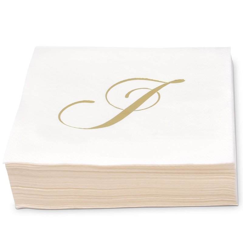 - High Quality: Napkins are made of high quality thick paper. Napkins are soft and absorbent & dry your hands quickly. These personalized napkins will be great for any party. The metallic gold J initial party napkins really adds dimension to your parties as your guests will love the pretty design.