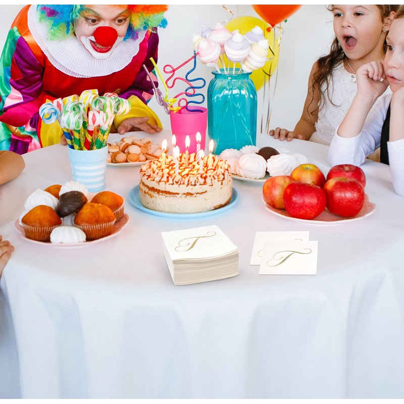 - High Quality: Napkins are made of high quality thick paper. Napkins are soft and absorbent & dry your hands quickly. These personalized napkins will be great for any party. The metallic gold T initial party napkins really adds dimension to your parties as your guests will love the pretty design.
