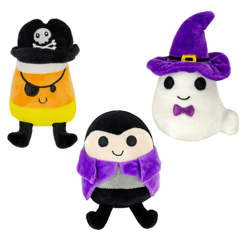 Giftable World Holiday 3.5" Plush Pet Toy Fun for Halloween with Squeaker Dog Chew Toy - 3 Pack (Trick O' Treaters)