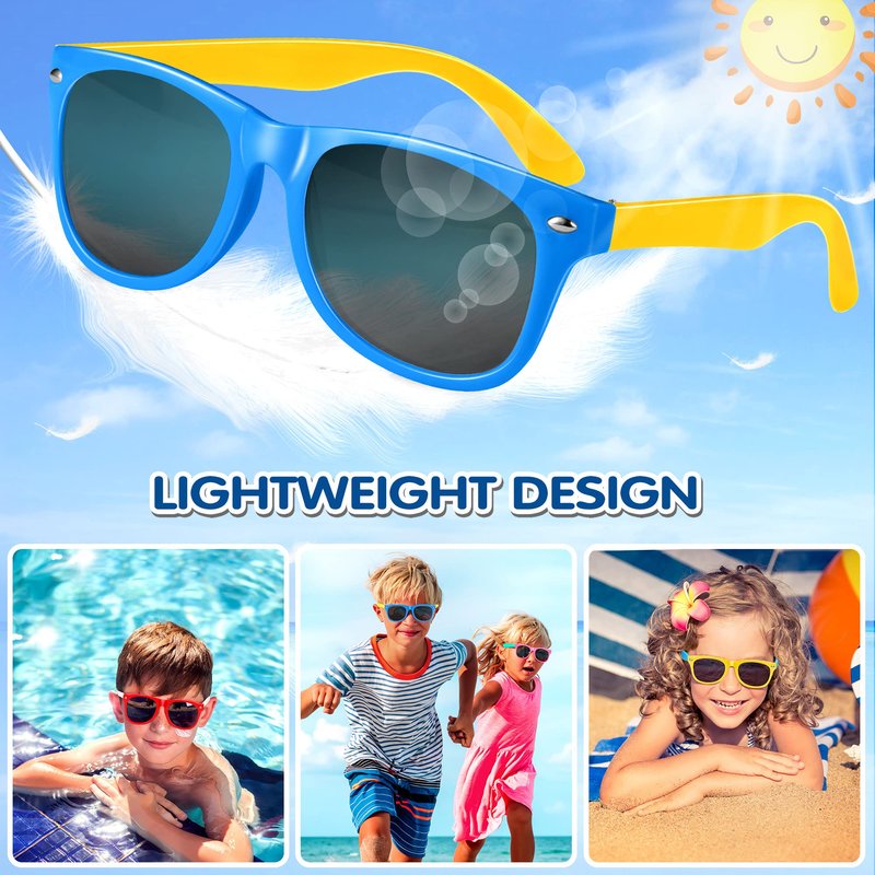 - [UV 400 PROTECTION & POLARIZED LENS] - These sunglasses for kids offer compete UV400 protection with added polarization. The high quality lens prevent bright sunlight and high-energy visible light from damaging the kids eyes. At the same time, kids sunglasses bulk can maintain clear vision and natural color.Prefect for summer beach party and outdoor activities.