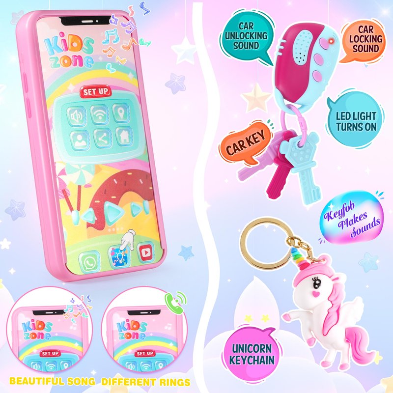 - 【Interactive Educational Girls Toys】Tollder girls all love pretending to put on a bright shade of lipstick just like mommy does each morning. This makeup set looks like the real deal, but you don't have to worry about the mess! Pressing the lock and unlock buttons of the car key will make a real lock sound and light(battery included). The phone also has music and lights. This toddler purse kit also includes some play money that parents can use to teach them some counting skills and communication