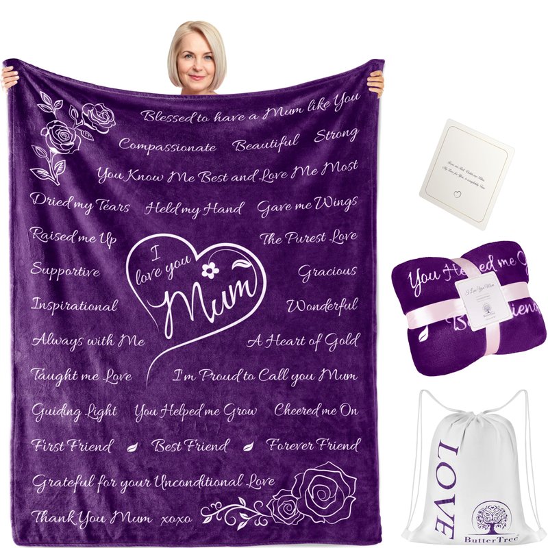 Gifts for Mom, Blanket for Mom Gifts, Mom Birthday Gifts from Daughter & Son, I Love You Mother Daughter Gift Ideas, Present for Mom Blanket, Best Mother in Law, Throw Blanket 65" × 50" (Purple)