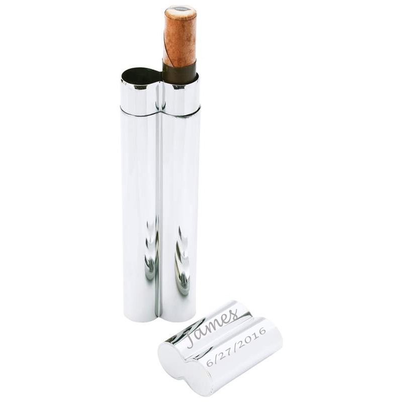 Gifts Infinity Personalized Dual Stainless Steel Cigar Holder free engraving. Features mirror finish and 2 tubes to hold your cigars of choice. Measures 1-3/4" x 8-3/8" x 7/8". Personalize it with 2 lines of up to 10 characters each. Limited lifetime warranty. White box.