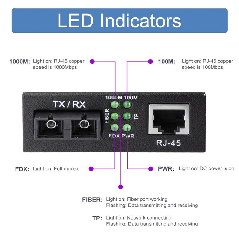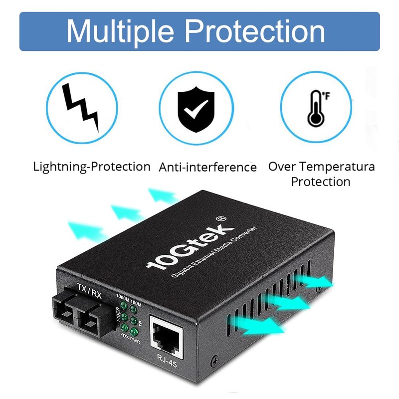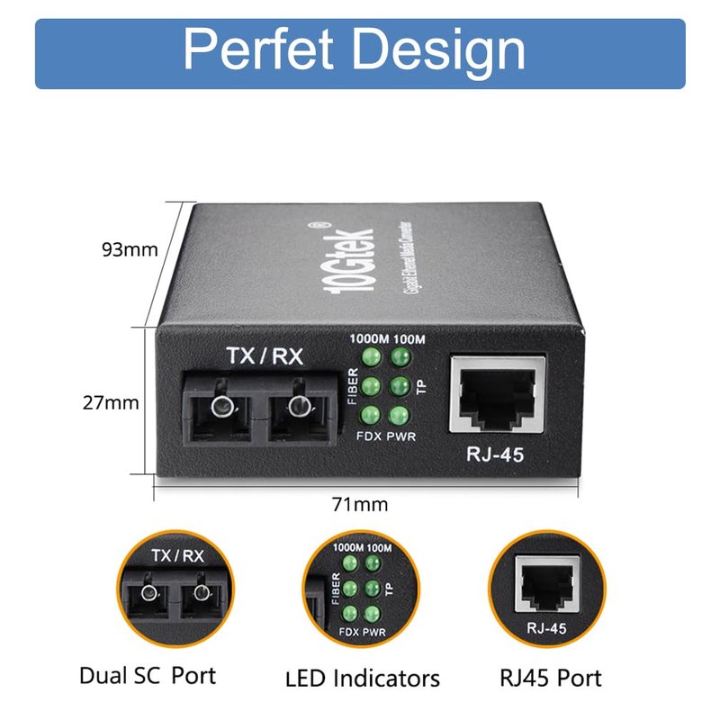 Gigabit SC to RJ45 Fiber Media Converter, Multimode Fiber to Ethernet Converter, 10/100/1000Mbps RJ45 Port to 1000Mbps Multi-Mode Fiber Dual SC Port, MMF, 1310nm, up to 1.5km, Auto-Negotiation