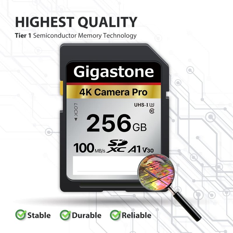 Gigastone 256GB SDXC Memory Card 4K Pro Series Transfer Speed Up to 100MB/s Compatible with Canon Nikon Sony Camcorder, A1 V30 UHS-I Class 10 for 4K UHD Video