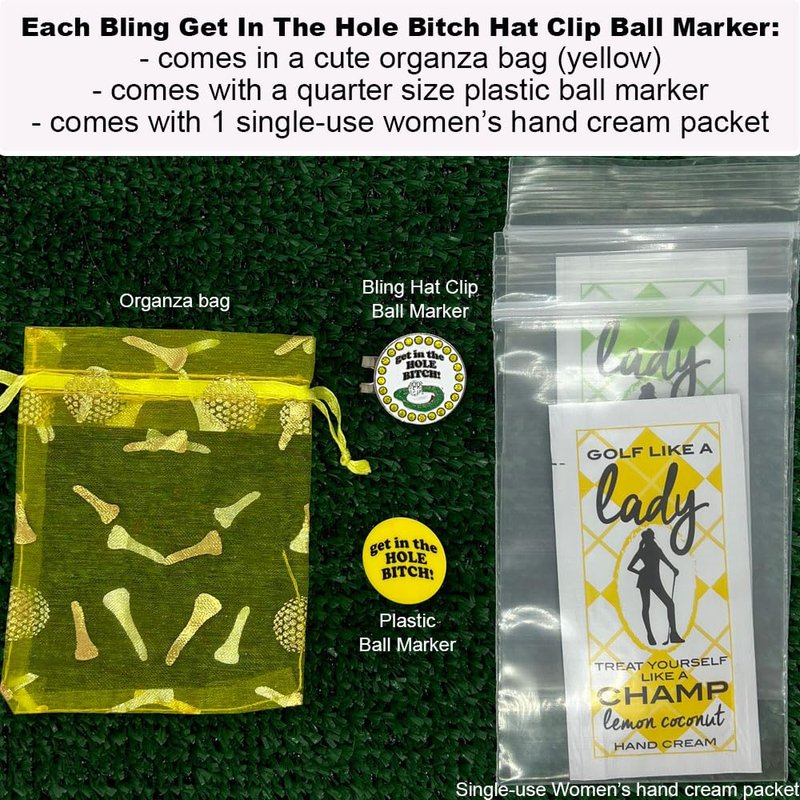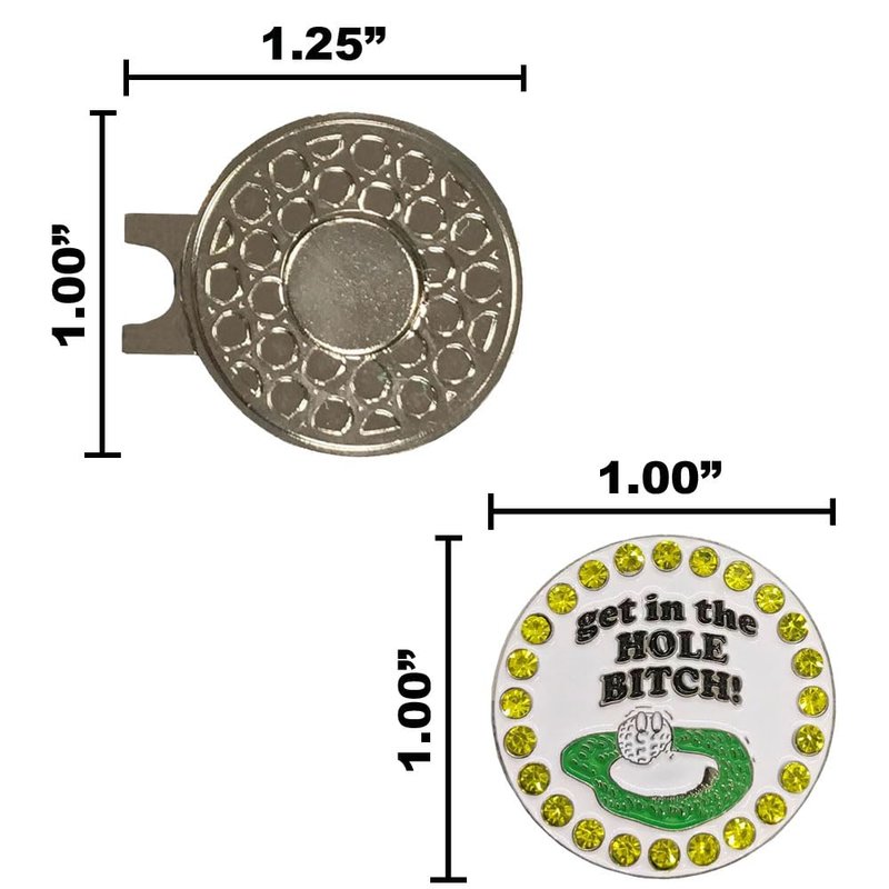 - FUNNY DESIGN - Be the envy of the links with this blingy Get In The Hole Bitch golf ball marker. This design features a golf ball on the edge of the hole, and says, "get in the hole bitch!"