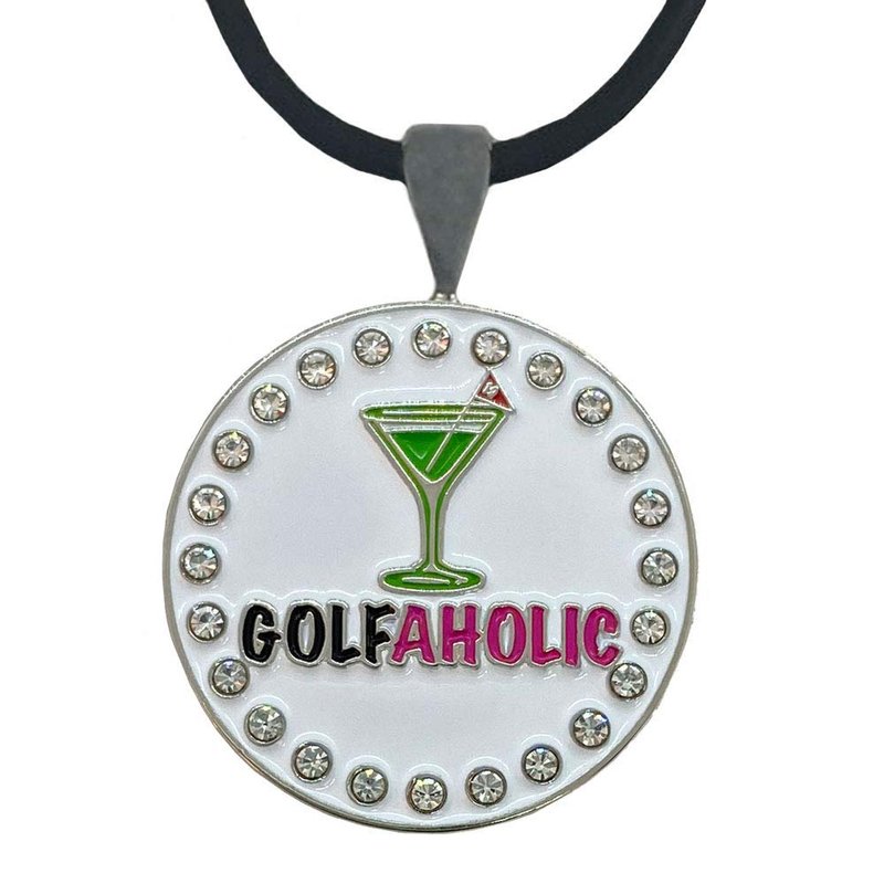 Giggle Golf Bling Golf Ball Marker With A Magnetic Pendant Necklace for Women (Golfaholic)