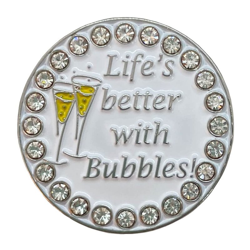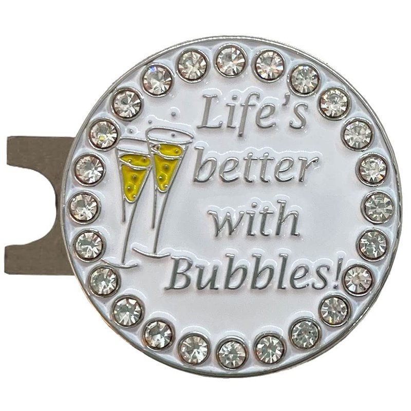 Giggle Golf Bling Golf Ball Marker with A Standard Magnetic Hat Clip | Great Gift for Women (Life's Better with Bubbles (Champagne))