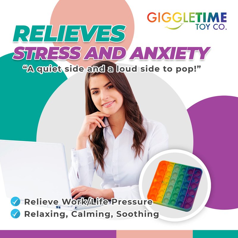 - RELIEVES STRESS & ANXIETY - These calming toys can help immediately improve your mood and ease your anxiety. Popping, twisting, and flipping these fidget toys are great stress and anxiety reducers! Our bubble push popping toy has a quiet side and a loud side to pop. When you are in a bad mood, you can press it to your heart's content.