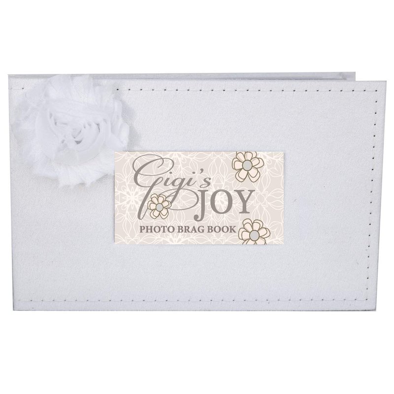 Gigi will be proud to carry this new brag book to show off her beautiful grandchild or grandchildren. This sweet Gigi gift will fit easily into her handbag, briefcase or gym bag--- it goes with her anywhere bragging rights are allowed! As a baby shower gift, our elegant Gigi photo album makes a great gift for a new grandma. The white faux-suede photo book features 16 inserts which hold up to 32 3.5x5 or 4x6 photos. It features detail side stitching and is post-bound and acid-free. Silk flower with button center for a sweet vintage look!