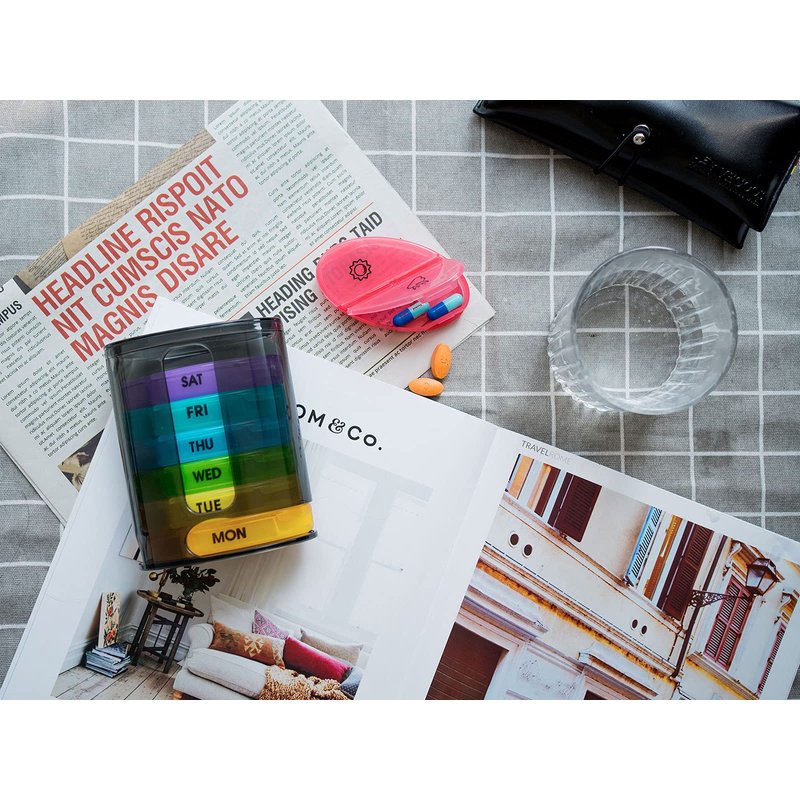 - COMPACT & PORTABLE - Due to its lightweight and compact shape, it's a perfect dispenser for carrying your supplements and pills while travelling.When stacked, the complete pill manager dispenser is about the size of a soda can without taking up too much space in the bag you carry with you.
