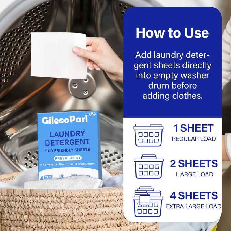 Gileooparl Eco-friendly Laundry Detergent Sheets, 120 Loads, Nontoxic, Nonirritating, Hypoallergenic Eco-strips for Sensitive Skin, Fresh Linen Scent, Space Saving, Lightweight, Easy to Use and Carry