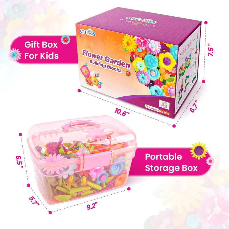 - Blossoming Creativity in the Outdoor Garden: Watch as your child's creativity blooms with our flower garden building toys. These toys provide endless opportunities for outdoor play, let kids design their vibrant garden, building colorful flower bouquets and exploring the wonders of nature. Encourage their crafting skills as they assemble the plastic flower components, fostering their artistic talents.