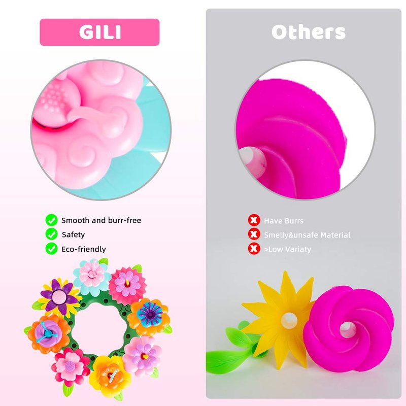GILI Flower Garden Building Stacking Toys - Build a Bouquet Sets for 4 5 6 Year Old Toddler Girls Arts and Crafts for Little Kids Age 3yr Up Best Top Christmas Birthday Gifts for Creativity Play