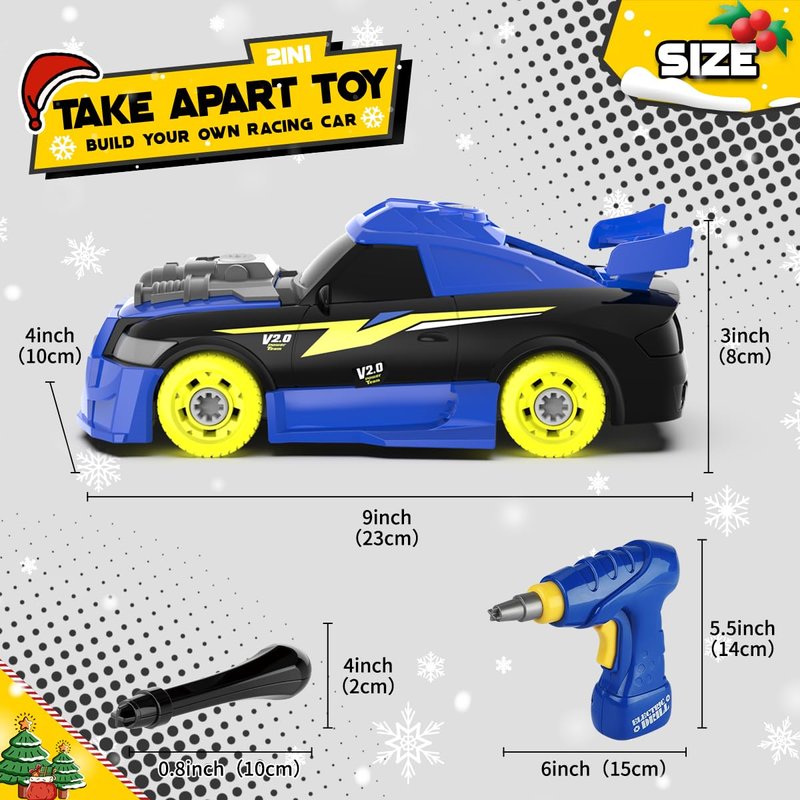 - Realistic Design: Once the take apart car toy is assembled successfully, the racing car headlights will light up and car sounds will play when you press the hood down, you can turn it off as needed, bring your kids a fully immersive driving experience
