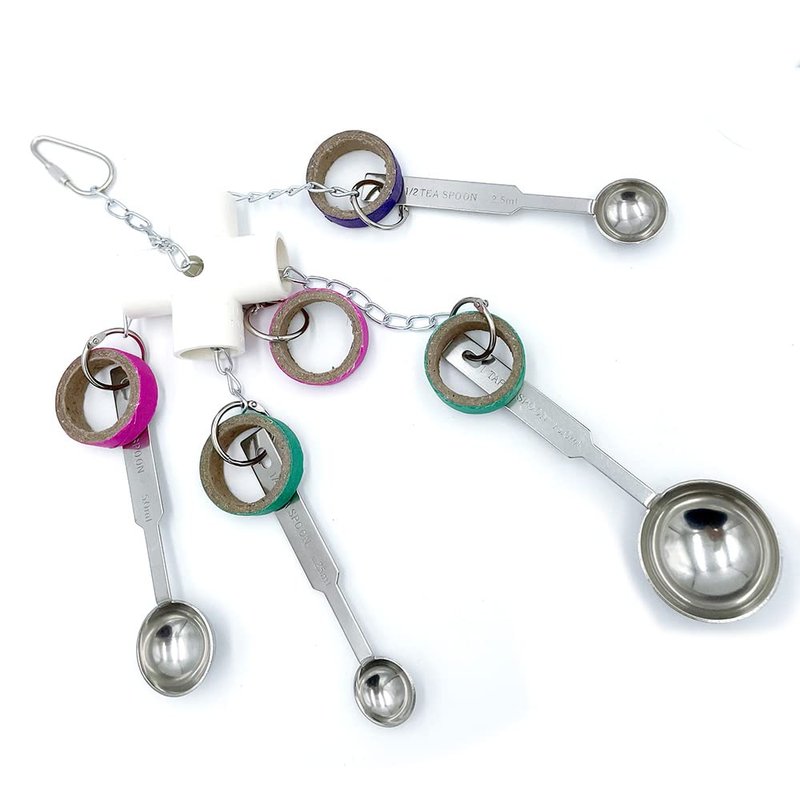 GILYGI Durable Bird Parrots Scoops and Bagel Toys, Pullable Stainless Steel Spoon and Cardboard Ring Toys for Small and Medium Bird Parakeets, Cockatiels, Conures, Budgie, Lovebirds, Finches