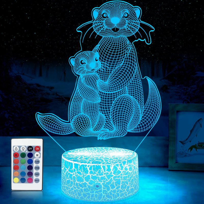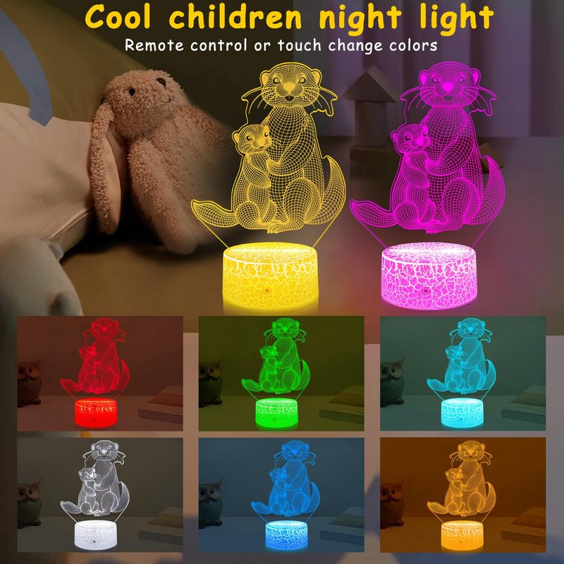 GIMFRY Otter Night Lights Otter Gifts for Kids 16 Colors Changing with Remote&Touch otter lamp for girls bedroom 3D Illusion Lamp As Christmas Birthday Gifts for 2 3 4 5 6 7 8 year old Girls