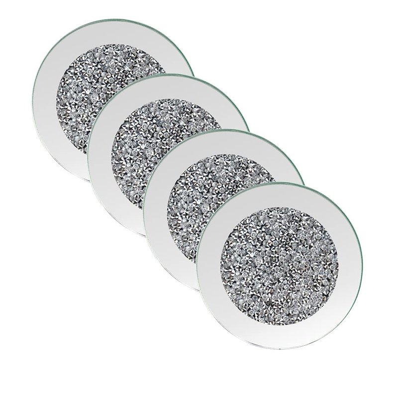 - This set of 4 coasters have a mirror effect on the outer square and a crushed glass effect on the inner square that makes the coaster shimmer and glitter