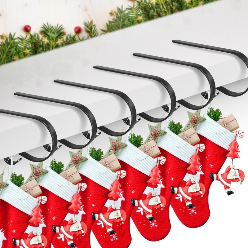 Ginbel Direct Stocking Holders for Mantle Non-Slip Adjustable Christmas Stocking Holder Stand Metal Stocking Hangers Christmas Party Decoration Supplies (Black, 6 Pack)