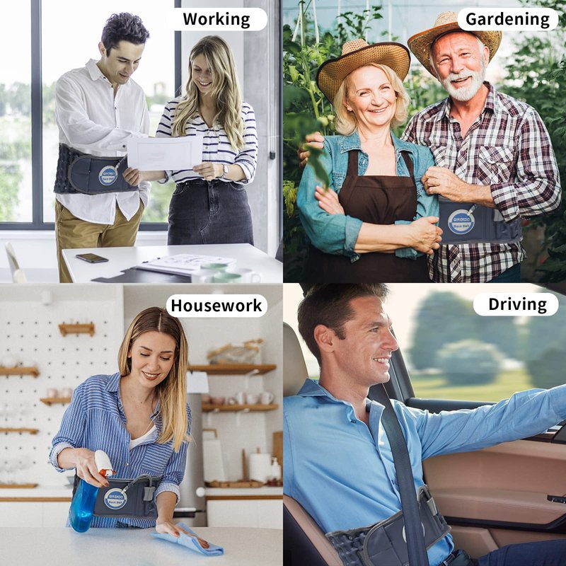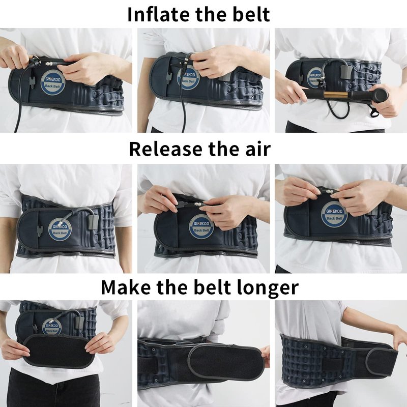 - Decompression Back Belt: The Lumbar air traction belt, combined with Ergonomic traction, allows you to better back traction.