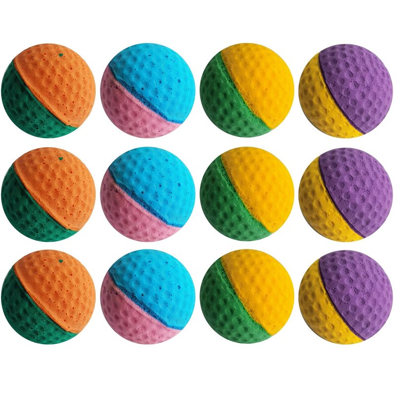 Sponge pet ball diameter of about 1.6 inches, made of latex foam, shape is a golf ball, soft, lightweight, non-toxic, cat safe