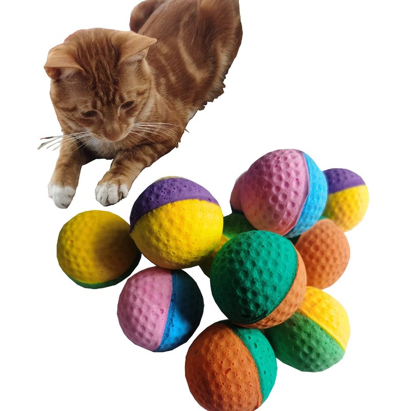 - Sponge pet ball diameter of about 1.6 inches, made of latex foam, shape is a golf ball, soft, lightweight, non-toxic, cat safe