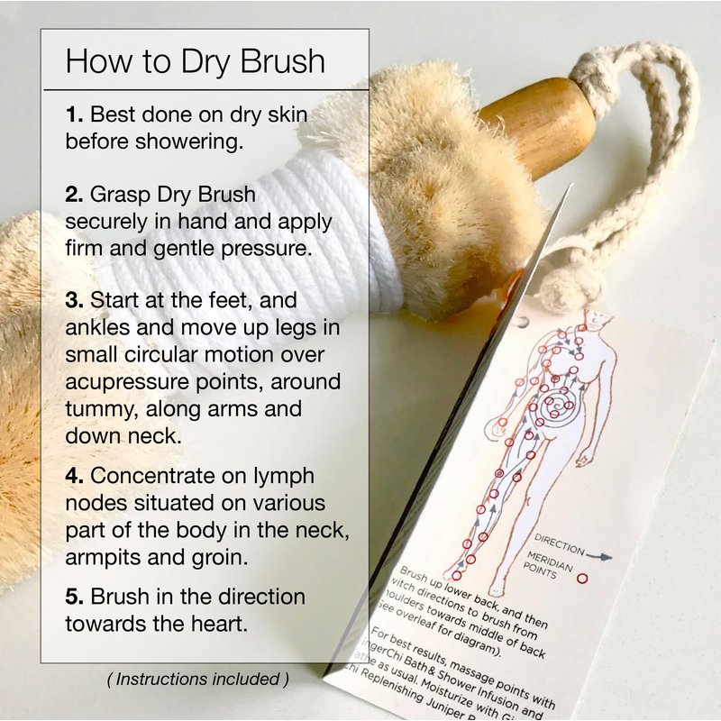 - Sleek Design Easy To Use: Cotton handle strengthens the grip, canvas rope helps you to hang it on even wet places. GingerChi Sisal dry skin brush for body comes with an illustrated leaflet with detailed instructions on how to properly brush over body with this natural dry brush.