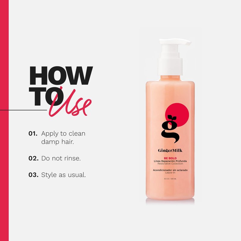 - EASY TO USE: GINGER MILK leave-in conditioner is easy to apply—simply apply to clean, damp hair without rinsing. Provides a lightweight feel and intense hydration, perfect for all hair types.