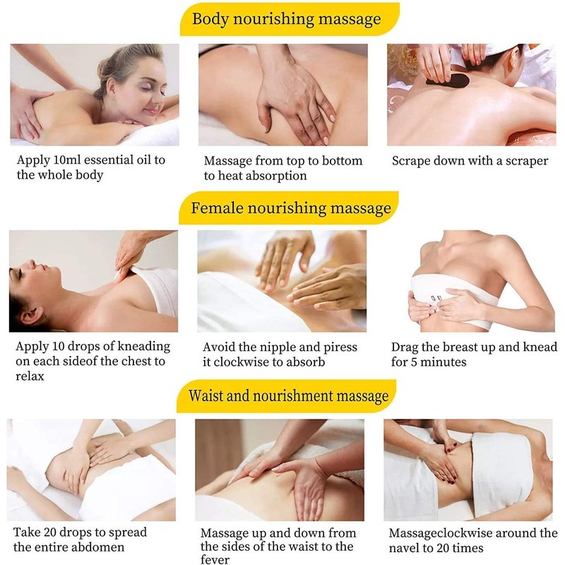 - Ginger Massage Oil: Natural ginger massage oil is a wonderful essential oil designed to relieve tired muscles. It is very suitable for relaxation and massage, while leaving skin feeling nourished and hydrated