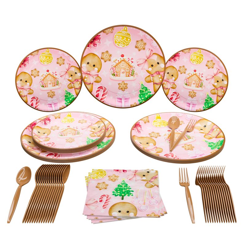 - 🍪 ALL-IN-ONE PARTY SET - No need to search for matching tableware! This pack has everything you need to create a sweet and festive gingerbread or Christmas-themed celebration. Simply unpack, set your table, and you're ready to enjoy the holiday cheer!