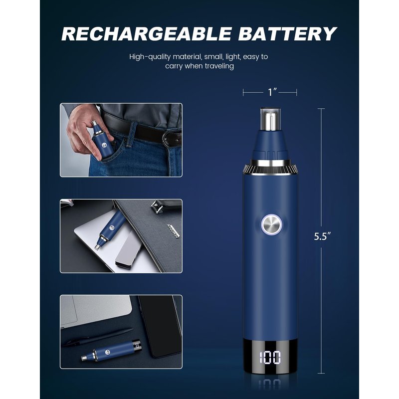 Are you tired of unruly nose hair, ear hair, and unwanted facial hair that affects your appearance and confidence? We have the perfect solution for you with our 2023 model Nose Hair Trimmer. It's a grooming tool that combines versatility, safety, and convenience to ensure you always look your best.Versatility in Grooming: This nose hair trimmer is not limited to just nose hair; it's a true all-in-one grooming companion. With its adaptive trimming system, it effortlessly handles nose hair, ear hair, eyebrows, beards, and facial hair. Say goodbye to unwanted hair and hello to a refined appearance. It's perfect for both men and women, ensuring a polished look every time.Safe and Painless Grooming: We understand the importance of a painless and irritation-free grooming experience. Our trimmer features a hypoallergenic stainless steel tip that prevents pulling, tugging, or scratching. The dual-edge stainless steel blade system with a 360° internal rotation design ensures efficient, painless, and residue-free cutting. It's gentle on your skin, ensuring a comfortable experience.Elevate your grooming routine with our multifunctional Nose Hair Trimmer. It's a grooming tool that embodies precision, convenience, and customer care. Make it yours today and always present your best self with confidence.