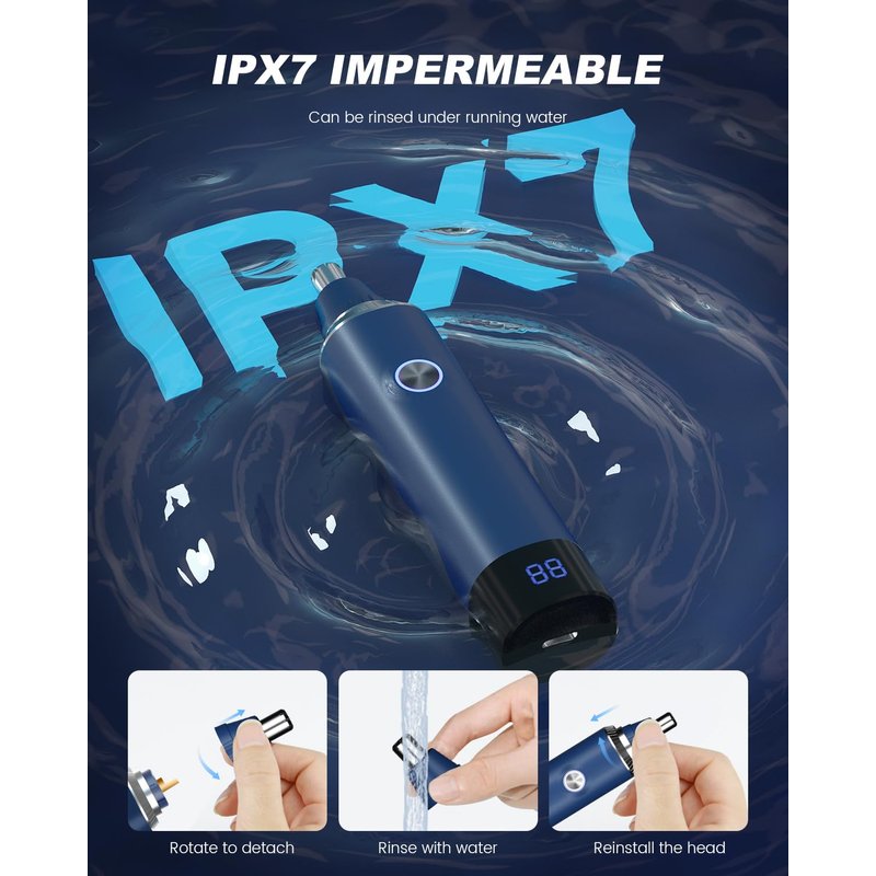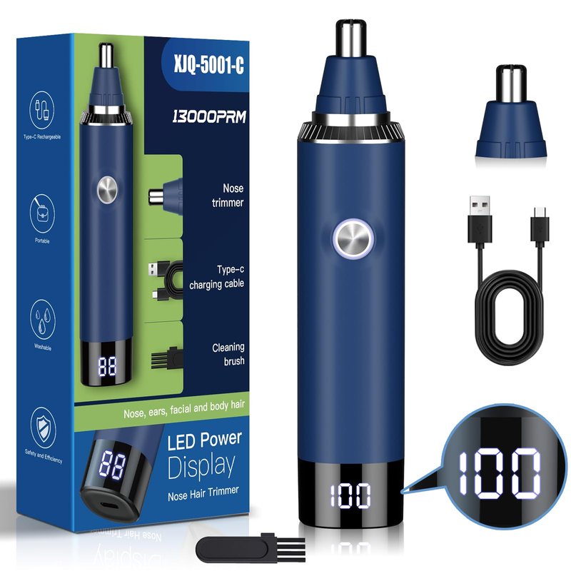 - Equipped with a powerful copper-core motor and 360° rotating dual-blade system, this trimmer operates at 12,000 RPM. The precision stainless steel blades ensure painless and accurate trimming, fitting snugly into the nasal cavity to avoid pulling or damaging hair, thus providing a safer and more comfortable experience
