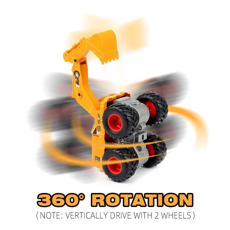 - 360 Degrees Rotation & 4 Powerful Wheels: Our construction trucks are equipped with double friction wheels and no battery required. The trucks will stand up to 360 degrees high speed rotation or drive forward/backward for quite a long distance by slight push, and the 4WD wheels can also easily go uphill, which are perfect for sandbox play. Kids will love this kind of powerful construction toys and enjoy several hours fun.