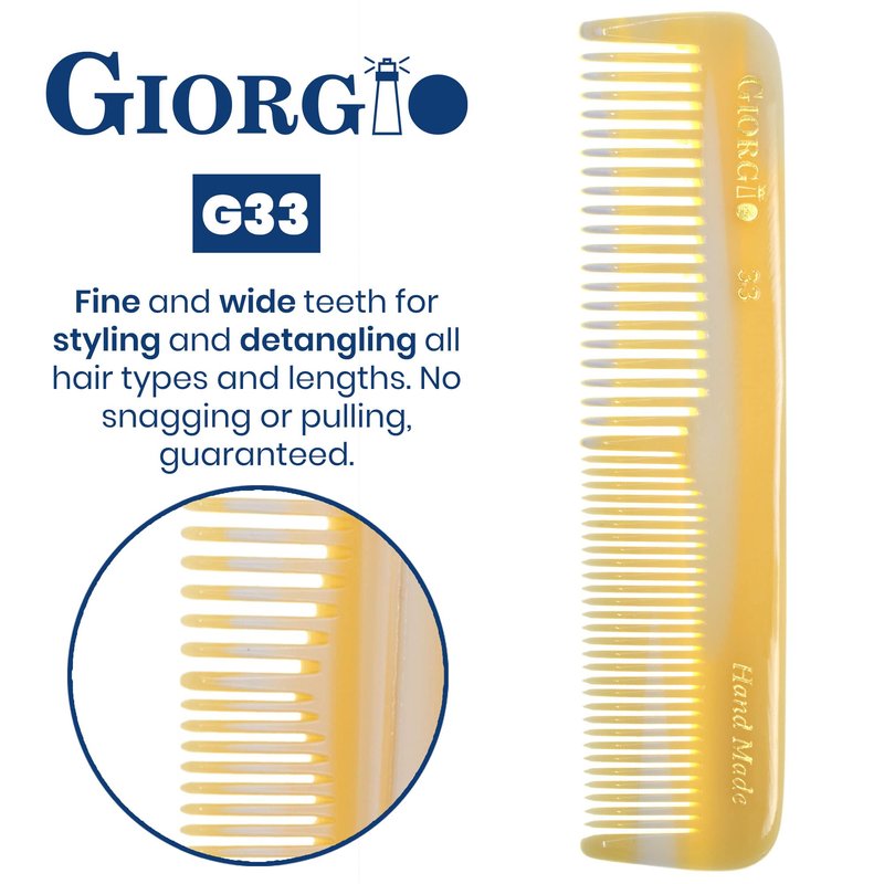 - Giorgio Pocket Comb 4.5 Inch Small Ivory finish. Double tooth thick and fine, a must to keep in your bathroom, car, bag and for travel, fine tooth for straightener and finishing and coarse wide teeth for detangling thick, curly and wavy hair. Professional barber haircut comb for styling and teasing for all hair types, short, long, wet or dry. Fine toothed and detangler comb for hair, beard and moustache