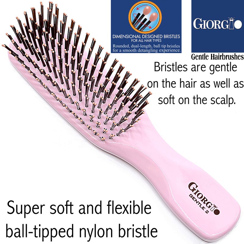 - Gentle Styling Brush: The Giorgio Gentle detangler brush is equipped with long bristles that are ball-tipped for scalp stimulation, and short bristles that excel at evenly distributing hair's natural oils, promoting healthy hair and lustrous shine.