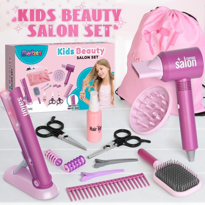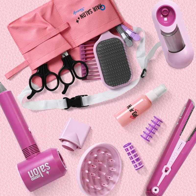 - COMPLETE SET: The Girls Beauty Hair Salon Toy includes a hairdryer, comb, hair straightener, scissors, and other hair styling accessories, giving kids everything they need to create imaginary hairstyles.