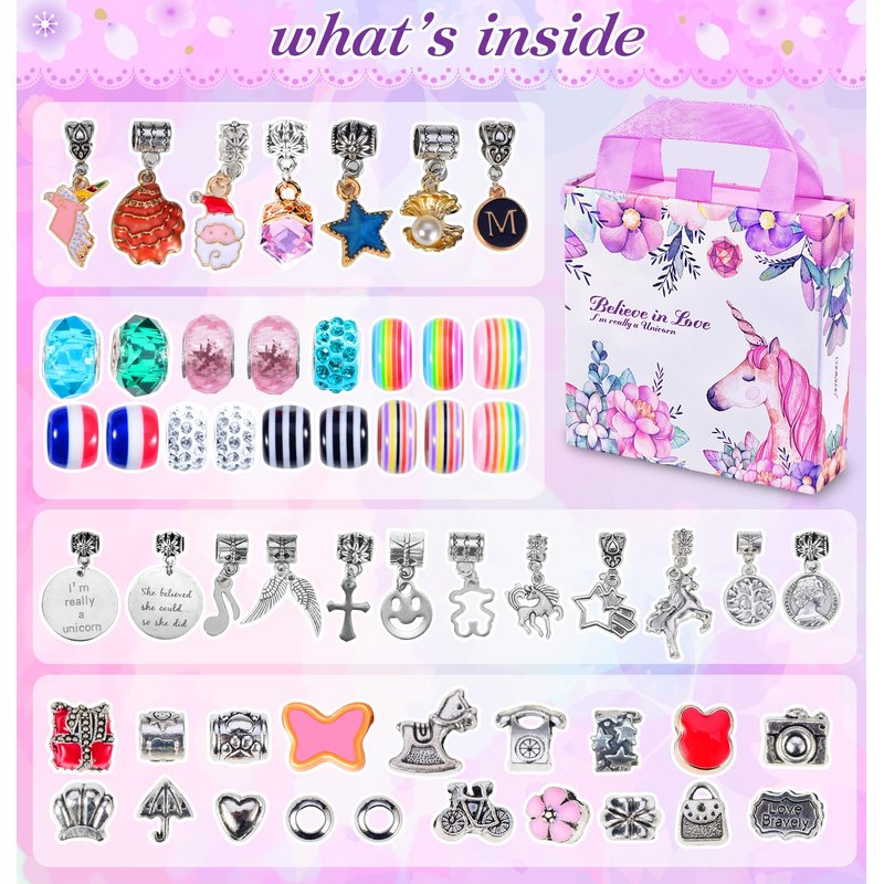 - Perfect Gift for All Occasions: Whether it's a birthday, Christmas, or just a party, our bracelet kit is the perfect gifts. Packaged in a beautiful unicorn box, it's the all-in-one gift that keeps giving - no need for extra trips to the store. Can be stored quickly and is suitable for children to carry. No-Tool, No-Glue, No Mess.