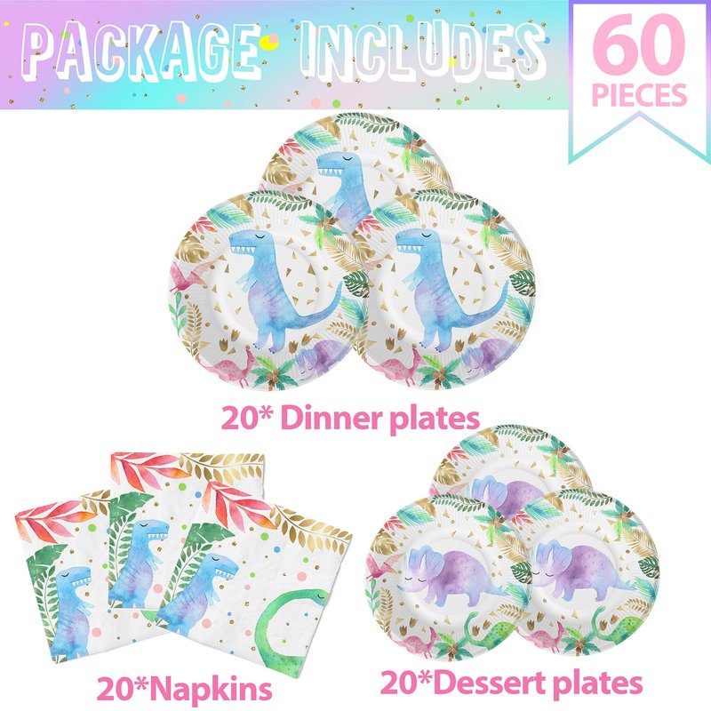 Girls Dinosaur Party Plates and Napkins - Pink Dinosaur Birthday Party Supplies (Serves 20)