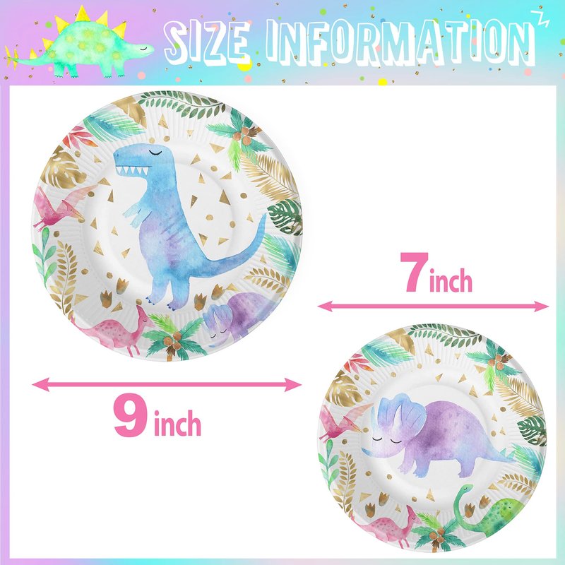 - One-stop Shopping: The set includes plates and cups of different sizes. We also provide other dinosaur party supplies that can be matched according to your needs.