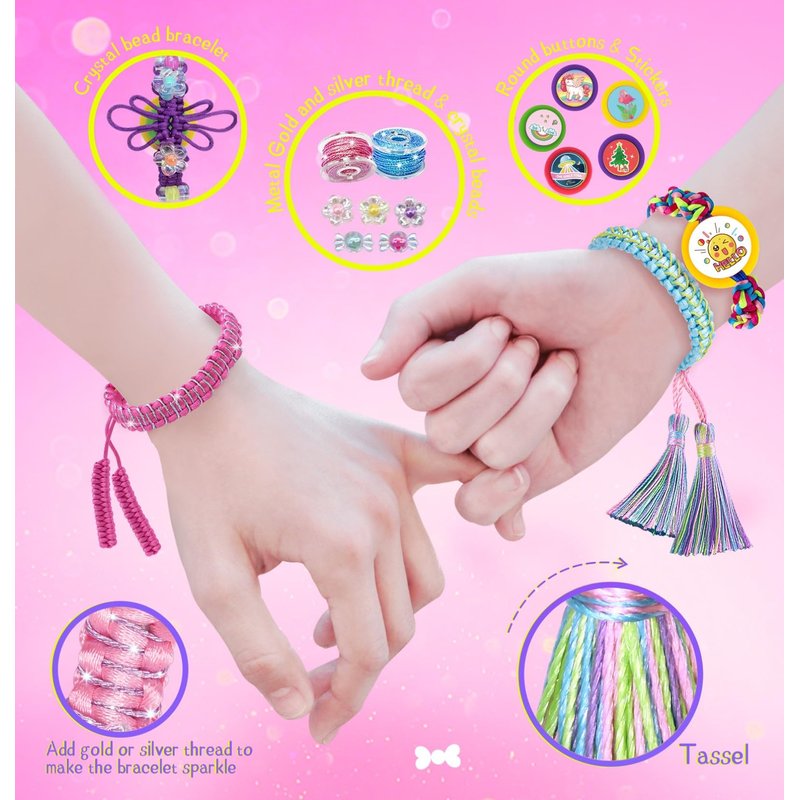 - Arts and Crafts kits for Teen Girls: Our friendship bracelet maker set includes not only 30 braided threads, 15 elastic threads in various colors, but also crystal beads, tassels, gold and silver threads and decorative stickers, with enough supplies for girls to create art that can be shared and worn. Girls crafts ages 7-10, The complete kit allows kids to not only make bracelets but also explore braiding hair, allowing young girls become the creator of popular style.