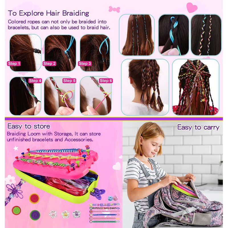 - Craft on the Go: Portable bracelet braiding loom provides ample storage space for the supplies a girl needs for her crafts, making this set not only portable but also tidy. Whether it's a sleepover, camping, plane travel, or a road trip, girls can bring this kit along for creative play anytime, anywhere.