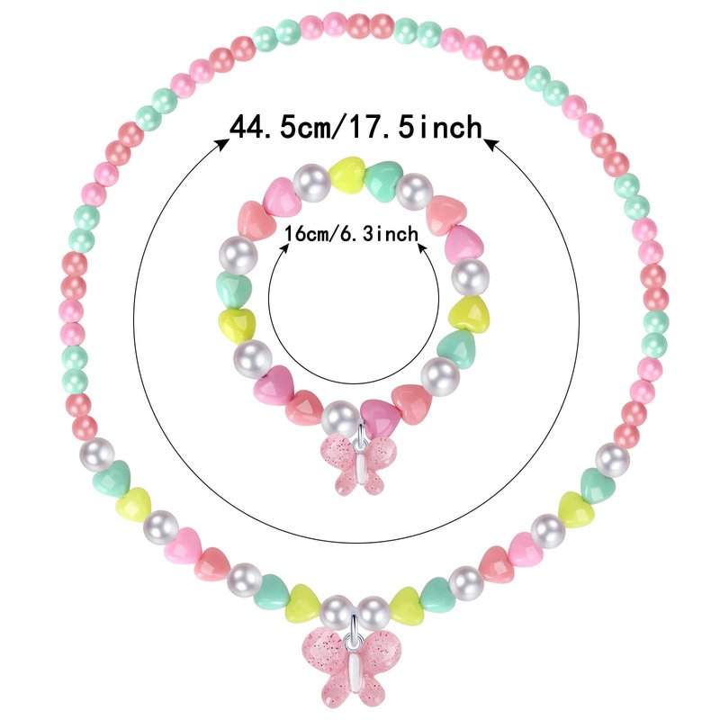 - Size for Girls- Cute Necklace Bracelet Ring for Kids,The elastic line is stretch to fit most of 3-8 years girls, easy to take off and put on, and it not easily broken by child.