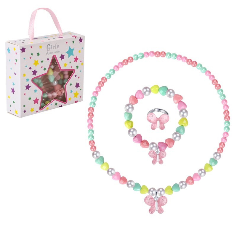 Girls Glitter Butterfly Jewelry Set - Toddler Butterfly Necklace Girls Pretend Plasy Toy Jewelry Box Set with Bead Necklace, Bracelet and Ring - Play Accessories - Ages 3+ Girl Birthday Gifts